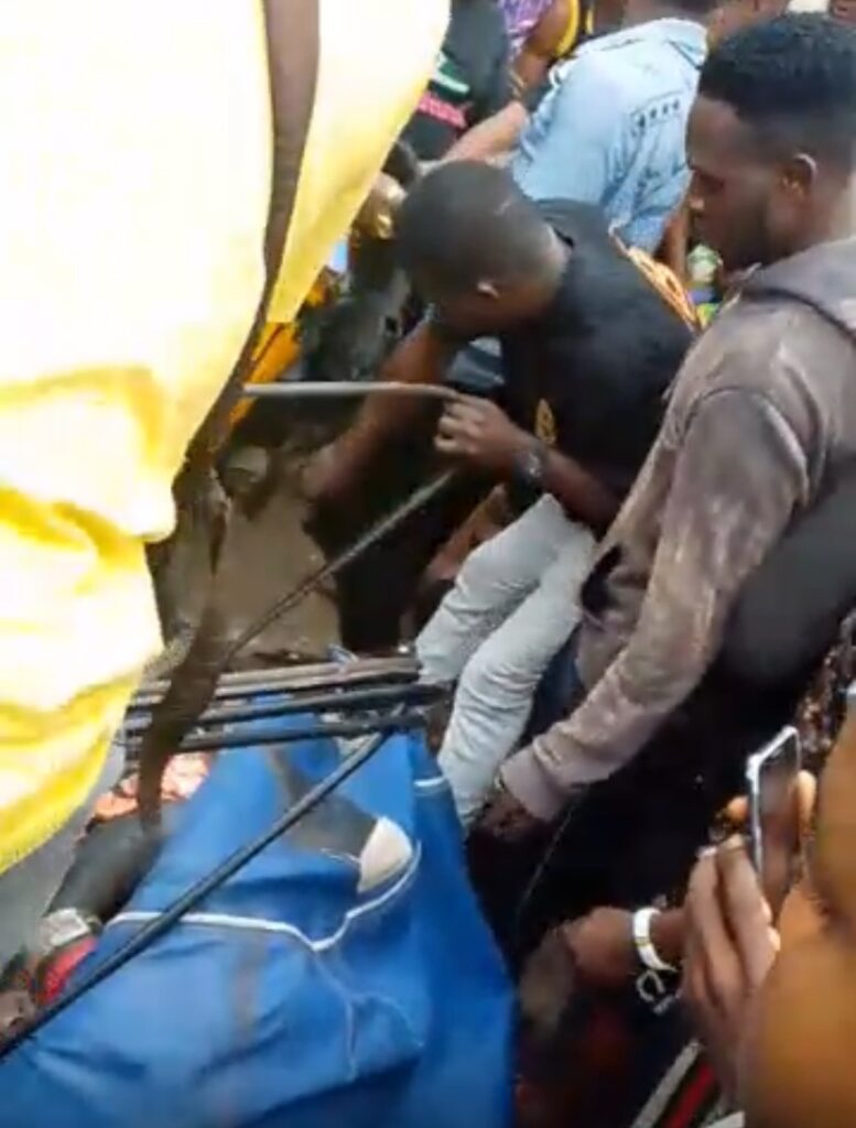 Two of the occupants were trapped and crushed to death on the spot, while two others miraculously escaped unhurt. One witness alleged that a woman and her young son were among the passengers inside the tricycle when the incident occurred.