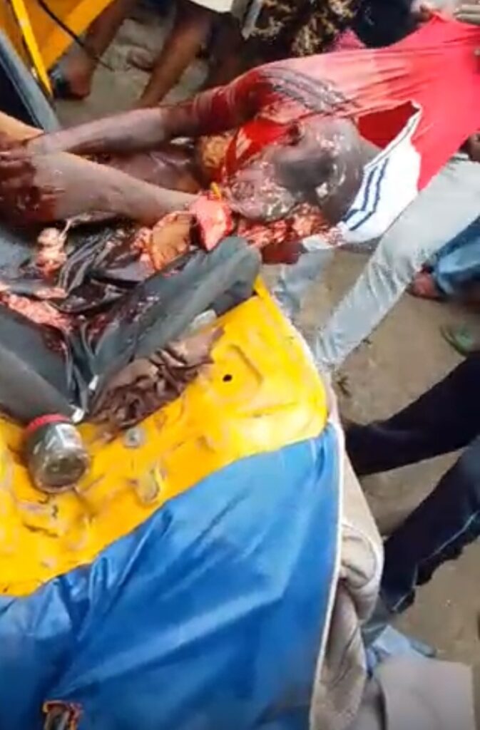 The fatal crash, which occurred around 8:20 a.m., involved a tricycle (Keke) and a trailer—both reportedly without registration numbers. According to eyewitnesses and viral videos from the scene, the trailer was navigating a badly damaged section of the road when it suddenly tilted and landed heavily on the tricycle carrying four passengers.